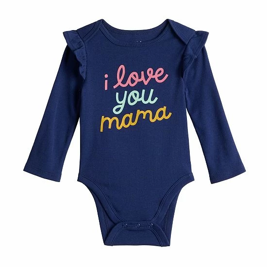 Featuring ruffled shoulders, she’ll look too cute wearing this girls’ Jumping Beans graphic bodysuit.