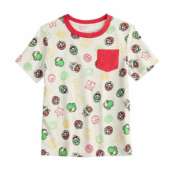 He’ll have “1-UP” on his day in this fun retro-inspired boys’ Super Mario print pocket tee from Jumping Beans.