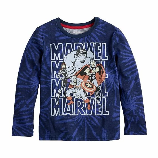 He’ll feel super in this tie dye boys’ long sleeve The Avengers graphic tee from Jumping Beans.