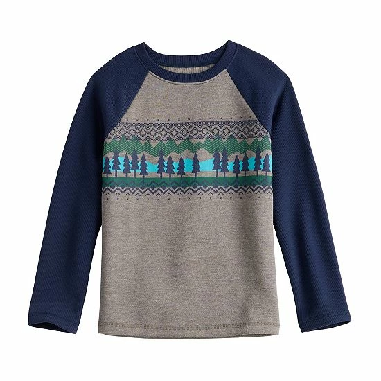 Keep him comfy in this classic flatback raglan graphic tee from Jumping Beans® with multiple fun patterns.