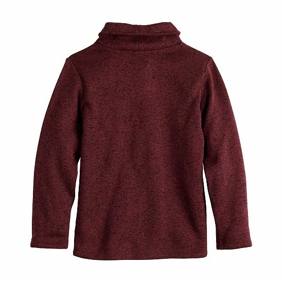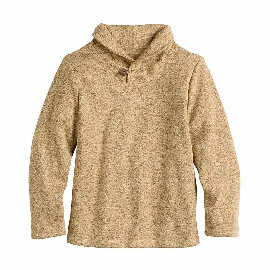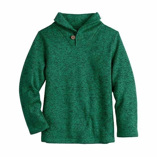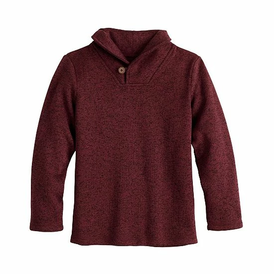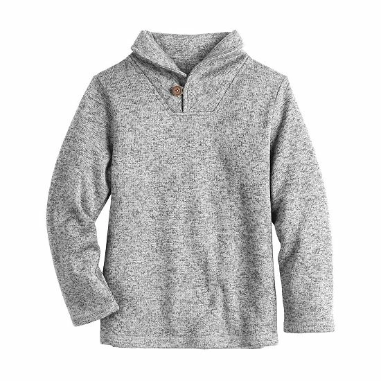 He’ll look sharp without sacrificing coziness in this boys’ shawl collar sweaterfleece pullover from Jumping Beans.