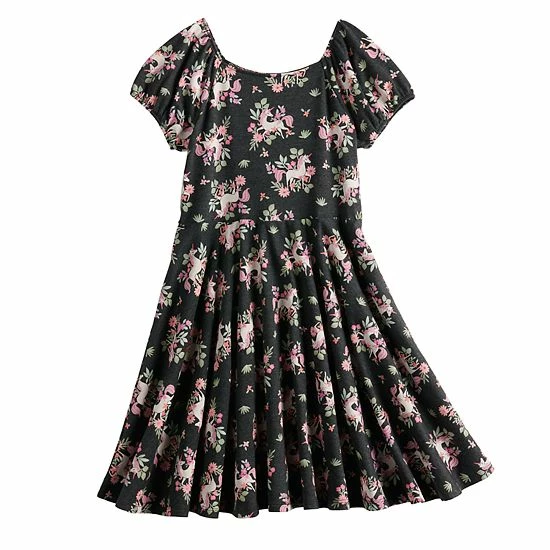 With its cheerful allover print and flattering fit-and-flare silhouette, this girls’ puff sleeve dress from Jumping Beans is sure to be one of her favorites.