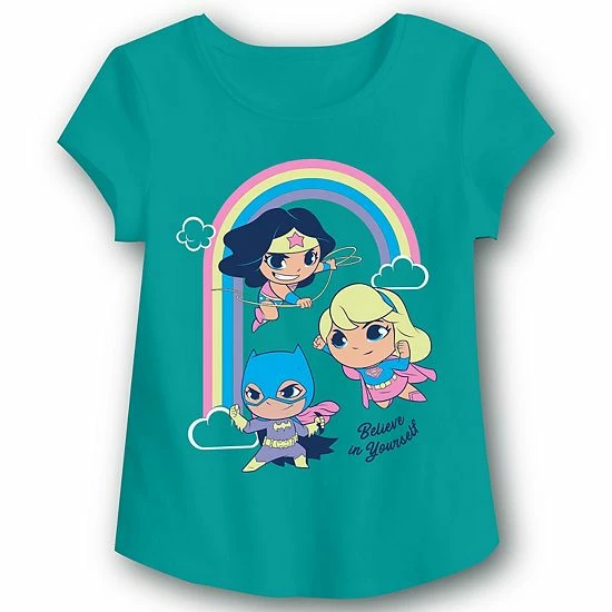 She’ll feel “super” in this girls’ Jumping Beans Cat Girl, Super Girl and Wonder girl graphic tee.