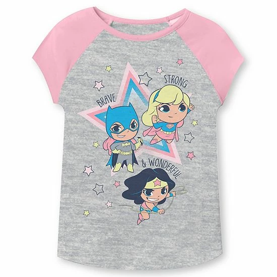 She’ll feel “super” in this girls’ Jumping Beans Cat Girl, Super Girl and Wonder girl graphic tee.