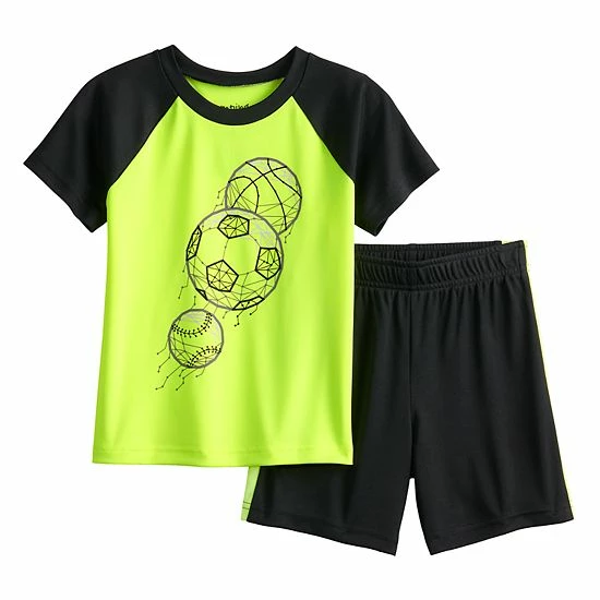 Get your boy looking so sharp with this sports-themed raglan active tee and shorts set by Jumping Beans.