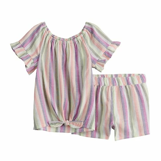 Give her a cute and complete look with this girls’ Jumping Beans top and shorts set.
