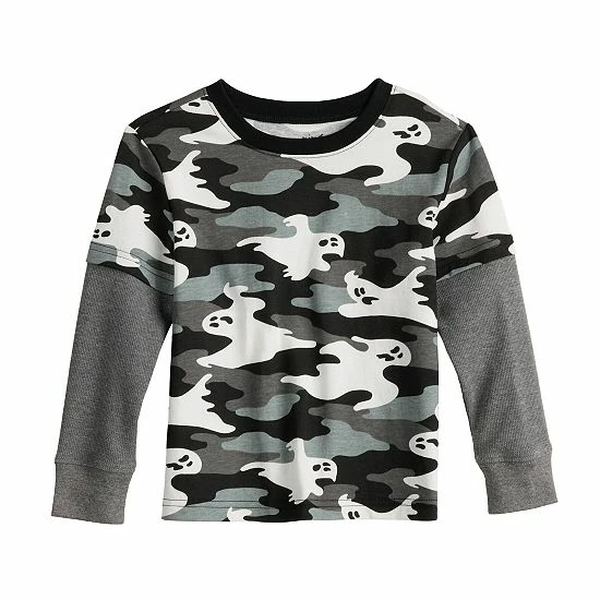 Give your kiddo spooktacular style with this mock-layer ghost and camp skater tee from Jumping Beans.